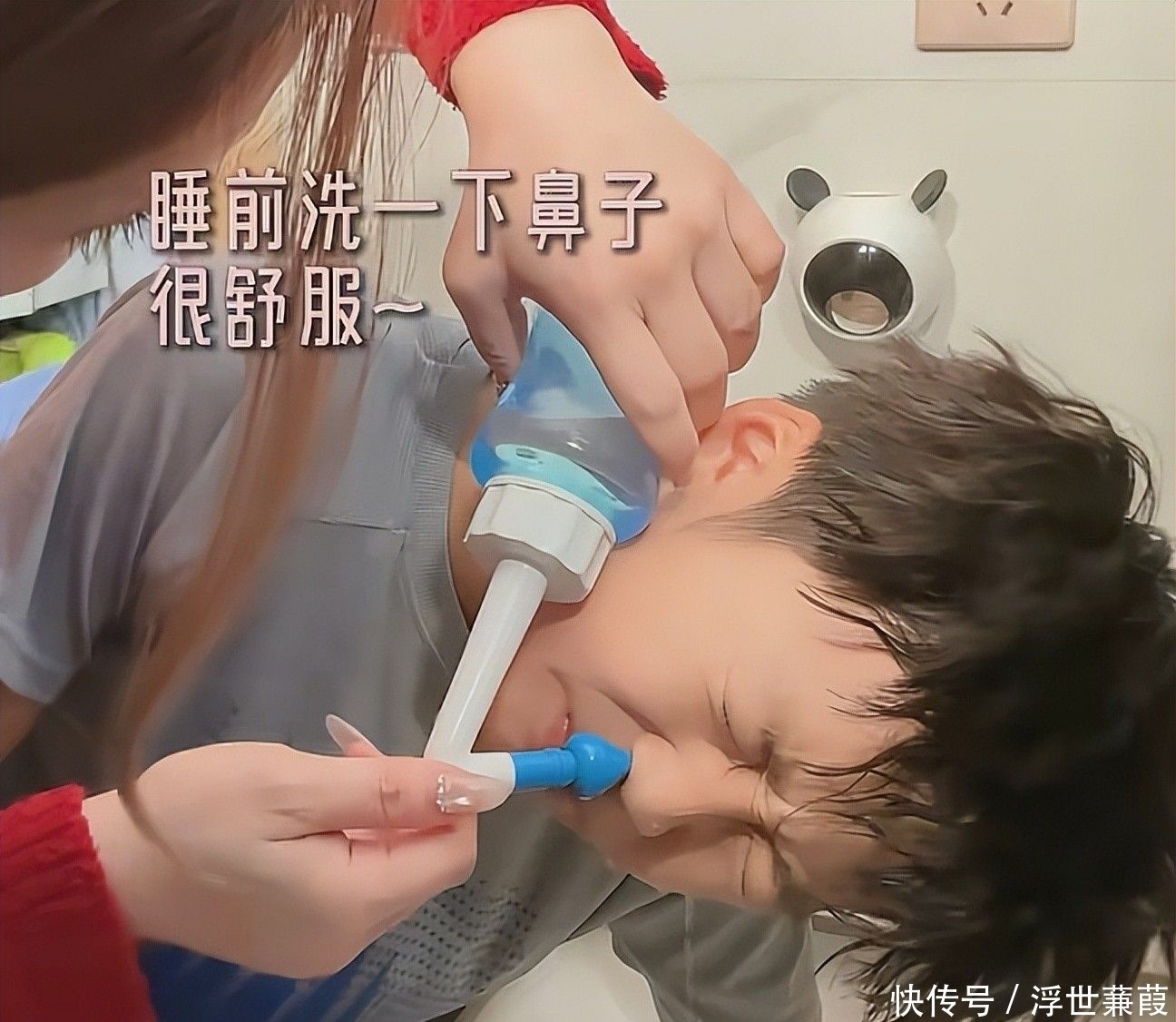 给儿子洗鼻子